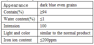 ธรรมชาติ: ลักษณะเป็นสีน้ำเงินเข้มแม้กระทั่งธัญพืช มันละลายในอนิลินร้อน แต่ไม่ละลายในน้ำ มันเปลี่ยนเป็นสีเหลืองสีเขียวเมื่อพบกับน้ำมันของกรดกำมะถัน มันเป็นสีเหลืองในของเหลวที่เป็นด่างรองกาไลต์และสีขาวในของเหลวที่เป็นกรด